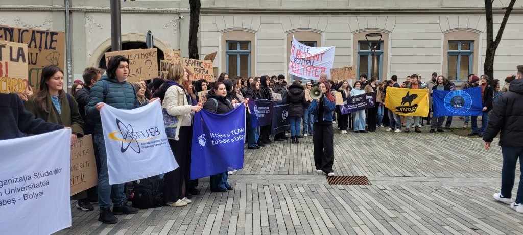 Studenți de la UBB, protest în fața Rectoratului împotriva majorării taxelor de școlarizare: “Drept la educație indiferent de venit sau clasă socială”