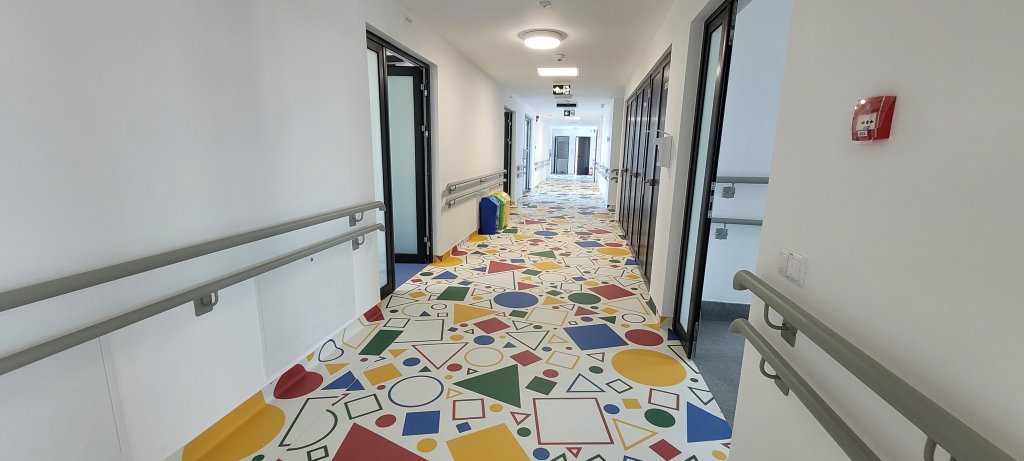 Noua clădire dispune de un cabinet de consultații și 3 săli de tratamente, un spațiu de activități recreative, un cabinet de logopedie, un cabinet de kinetoterapie, o sală de stimulare multisenzorială, un paraclis și 19 saloane cu băi proprii.