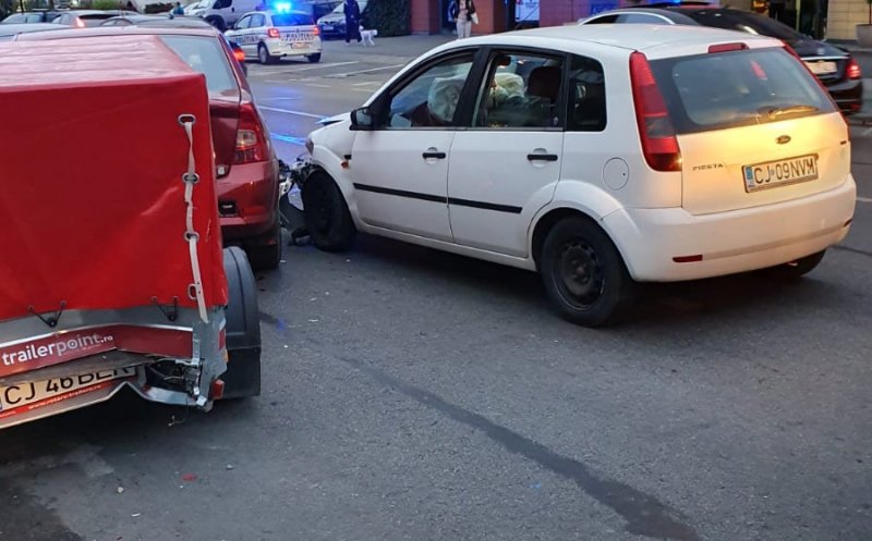 UPDATE: "Un conducător auto în vârstă de 53 de ani din Cluj-Napoca, pe fondul nepăstrării distanței de siguranță în mers a intat în coliziune cu remorca unui auto din față pe care l-a proiectat în alte două autovehicule. Șoferul care nu a păstrat distanța de siguranță în mers a fost rănit", precizează IPJ Cluj.