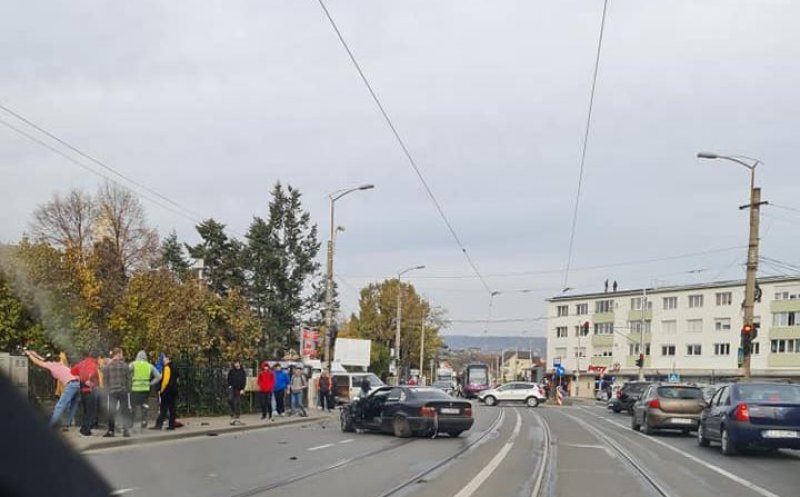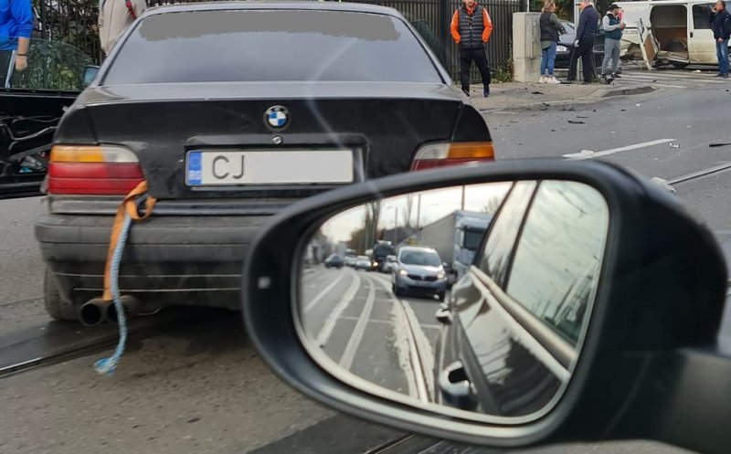 Din primele informații, o persoană a rămas blocată în mașină. Potrivit ISU Cluj, două persoane primesc îngrijiri medicale.