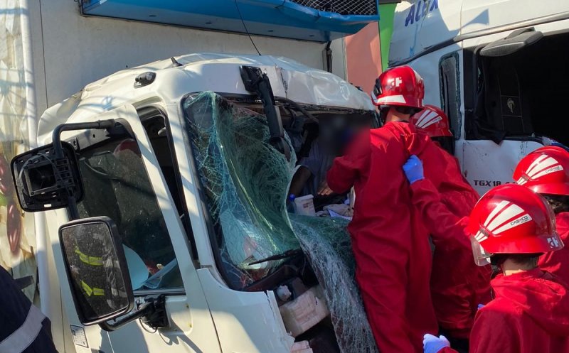 Două autospeciale cu modul de descarcerare și două echipaje SMURD au fost alertate, în jurul orei 10.00, ca urmare a unui grav accident rutier în care au fost implicate două autotrenuri și un autoturism.