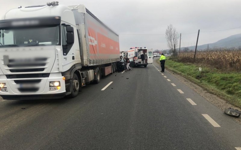 Un șofer de 22 de ani a rămas încarcerat după ce a ajuns cu mașina sub un TIR.