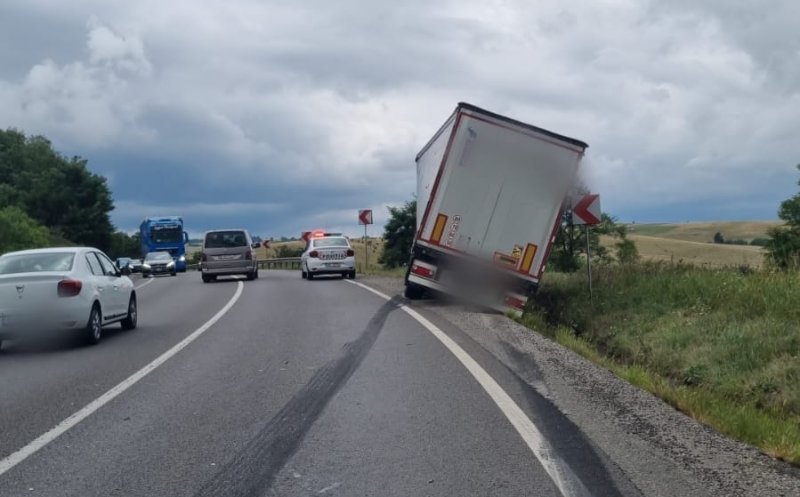 Foto Accident în Cluj! Un camion și o mașină implicate / Două persoane, consultate de medici
