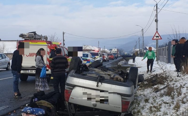 UPDATE: În urma accidentului a fost avariată ușor și o autoutilitară. Un tânăr de 20 de ani și trei minori, transportați la spital.
