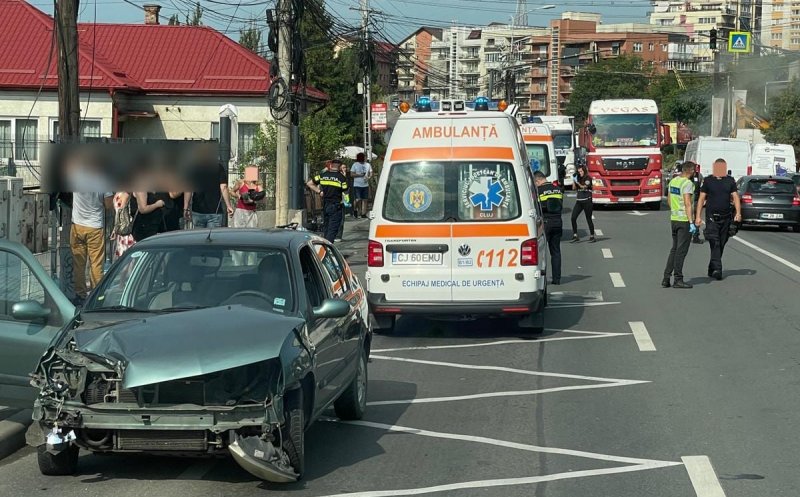 Foto ACCIDENT între două mașini și o motocicletă, în Cluj-Napoca. Trei victime, transportate la spital
