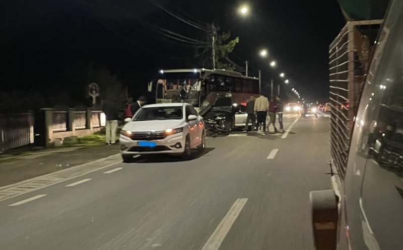 Foto ACCIDENT între un autocar și două mașini, în Cluj! Trei persoane sunt consultate de medici