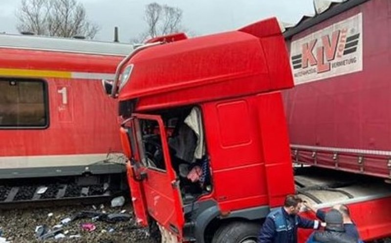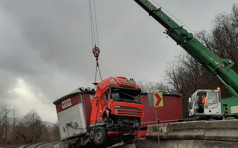 Conducătorul unui tir ce se deplasa spre Oradea a pierdut controlul volanului intr-o curba, a acrosat un autoturism, a rupt parapetul si a intrat pe calea ferată unde a fost lovit de un tren.