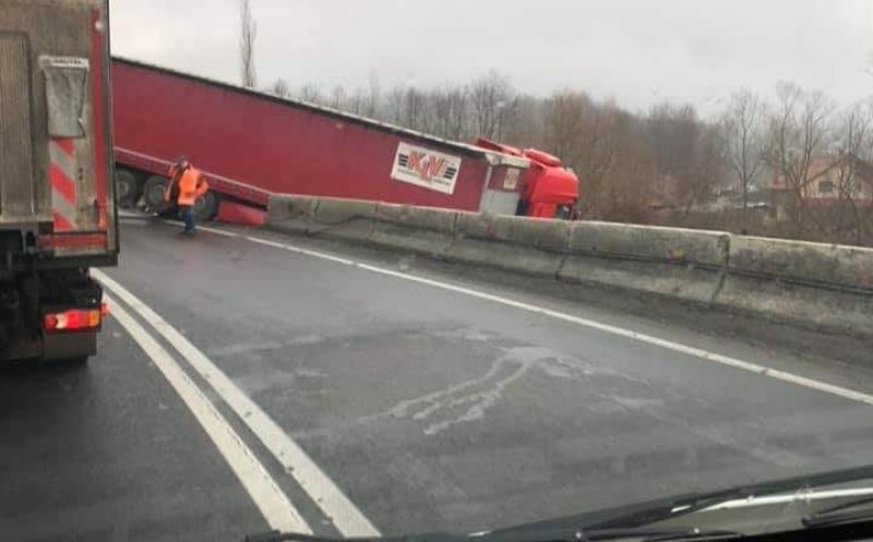 Conducătorul unui tir ce se deplasa spre Oradea a pierdut controlul volanului intr-o curbă.