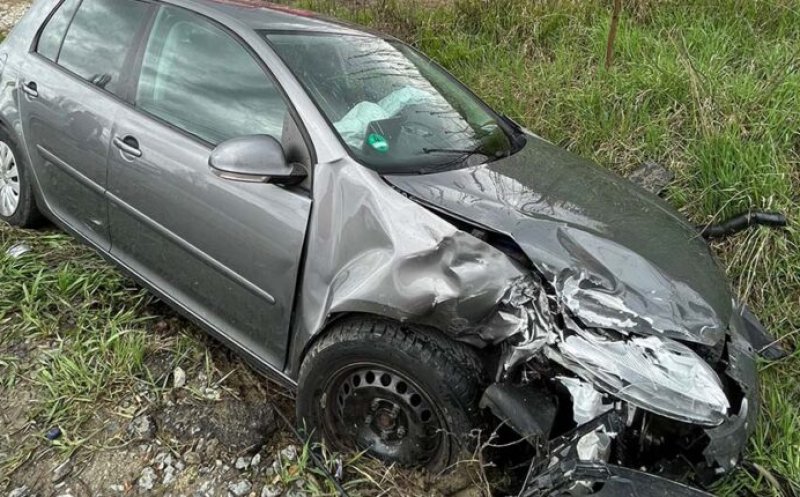 Accident la spălătorie. Două mașini s-au ciocnit, una a ajuns într-un șanț