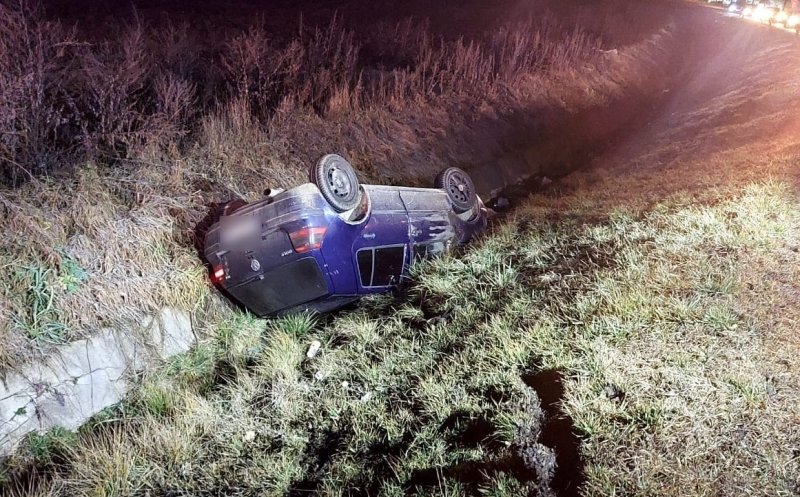 Foto ACCIDENT pa centura de ocolire a Clujului, Vâlcele-Apahida. Mașină cu roțile în sus