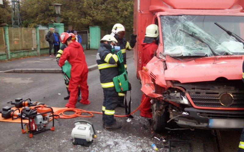 Solicitarea prin nr unic pentru apelulri de urgență 112 a fost primită în jurul orei 9.20, iar în momentul sosirii pompierilor la locul accidentului, au găsit un autocamion și o autoutilitară avariate și o persoană încarcerată în cabina autoutilitarei.