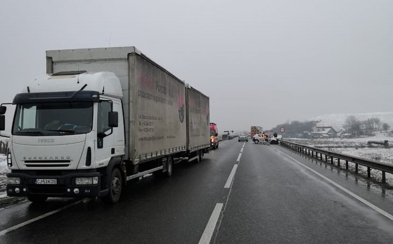 UPDATE, ora 10.23: Accidentul s-a produs pe fondul unei depăşiri neregulametare, peste marcajul longitudinal continuu. Traficul este în continuare deviat prin Apahida. Conducătorul care a rămas încarcerat are 25 de ani şi este din Jibou. Tânărul a fost cel care a provocat accidentul.