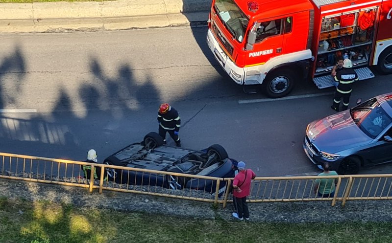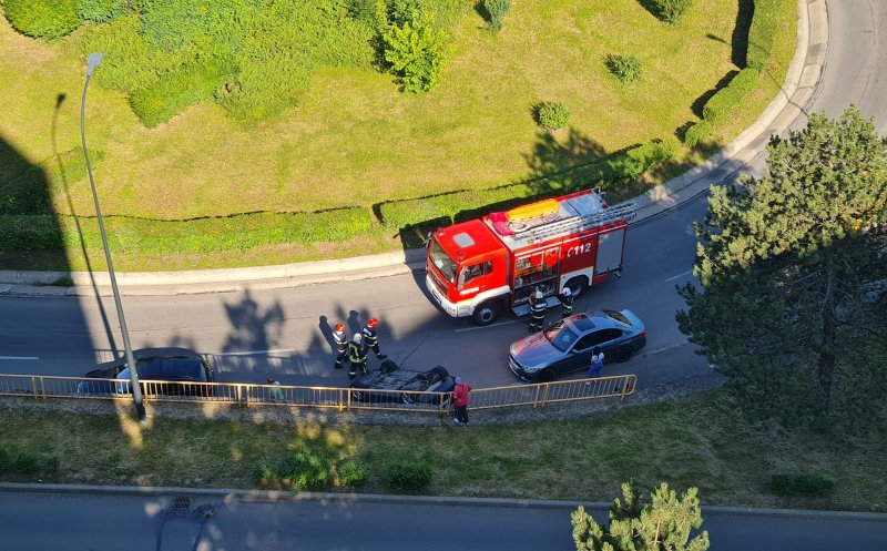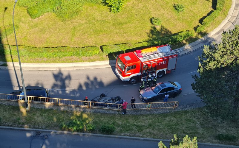 Foto ACCIDENT rutier cu autoturism răsturnat pe Podul N din Cluj-Napoca