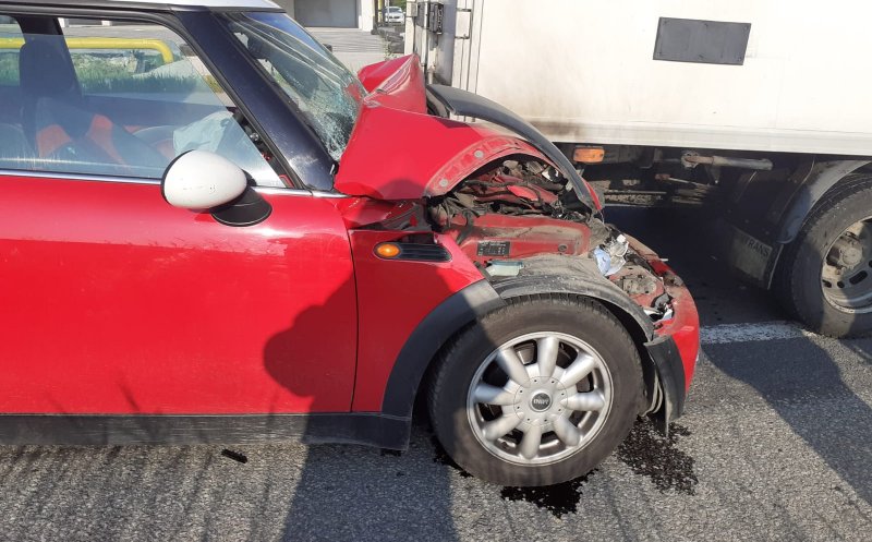 Accident rutier în Cluj, urmat de un incendiu. Coliziune între un autoturism și un camion