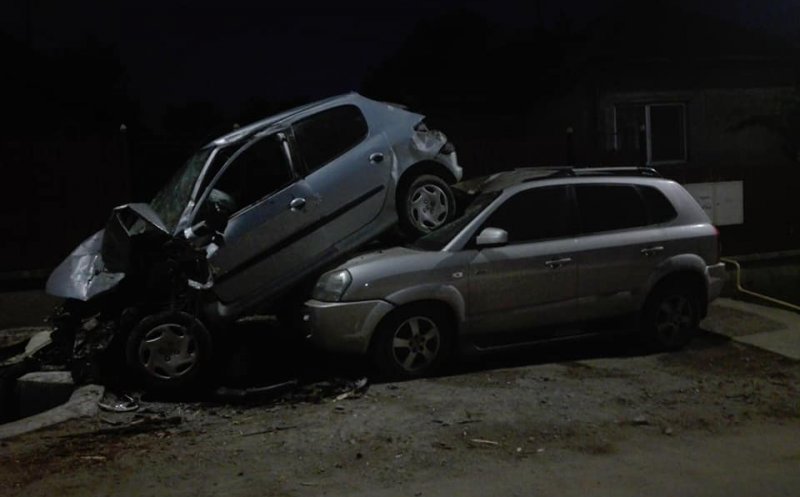 Video Foto Accident spectaculos la Cluj! Tânăr de 17 ani, beat și fără permis, a "parcat" într-o altă mașină