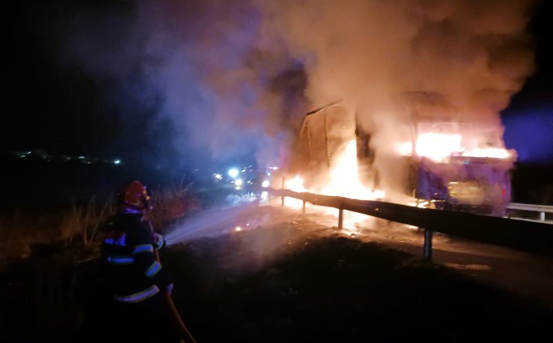 "La fața locului intervin două autospeciale pentru stingerea incendiilor, unde a fost găsit autocamionul, inclusiv rezervorul de carburant, și încărcătura acestuia, respectiv materiale din polistiren, arzând generalizat. Se acționează în aceste momente pentru stingerea incendiului, fiind în prezent localizat de către pompieri, fără posibilități de extindere la vecinătăți", a transmis ISU Cluj.