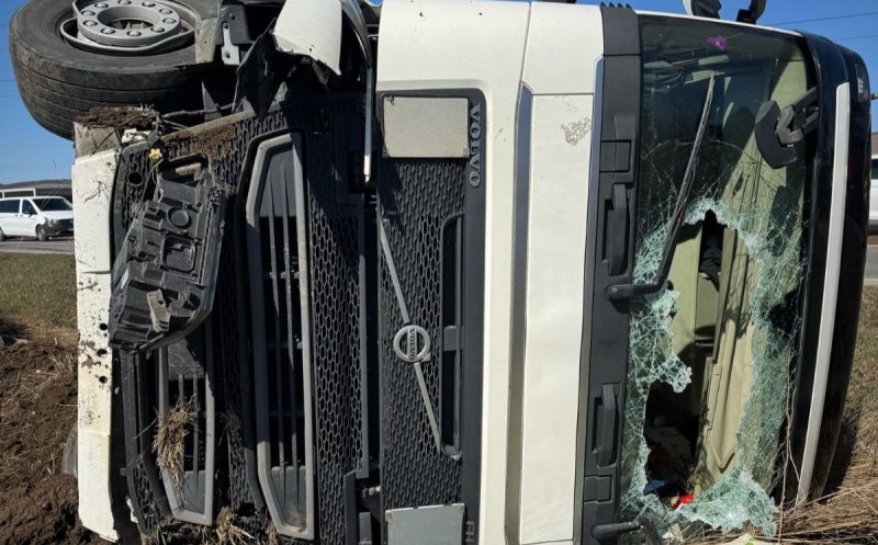 Un camion s-a răsturnat. Pompierii ISU au intervenit la fața locului.