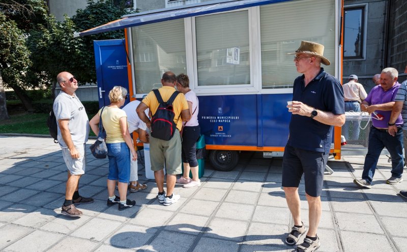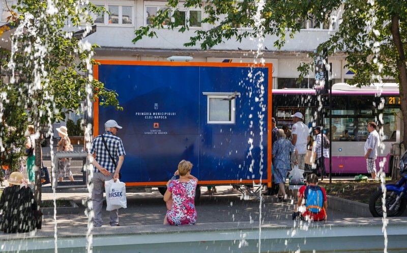 Primăria Cluj-Napoca distribuie gratuit apă și asigură spații în care persoanele care au nevoie se pot proteja de temperaturile mari.
