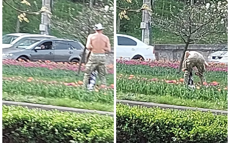 Un bărbat a fost surprins în timp ce fura lalele de pe spațiul public, în municipiul Cluj-Napoca.