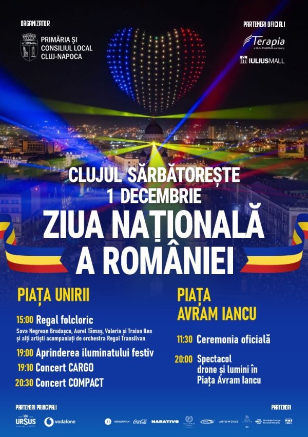 De 1 Decembrie întreaga comunitate sărbătorește Ziua Națională a României. Programul complet al manifestărilor de la Cluj-Napoca: