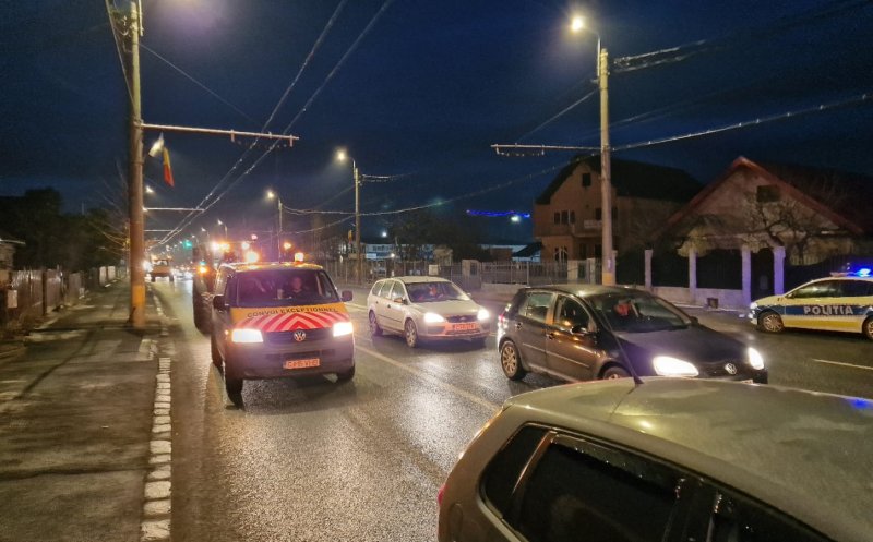 Polițiștii clujeni însoțesc coloana de autovehicule și dirijează traficul.