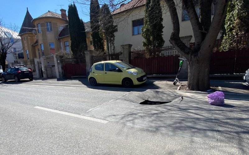 Un crater a apărut pe strada Andrei Mureșanu din Cluj-Napoca, în aceși loc în care a mai fost sesizată și în urmă cu câțiva ani.
