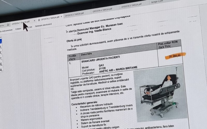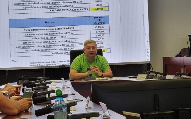 Liderul forului administrativ județean, Alin Tișe, a relatat cum insituția pe care o conduce a fost nevoită să achizționeze o targă medicală la prețul de aproximativ 6.000 de euro, fără TVA.