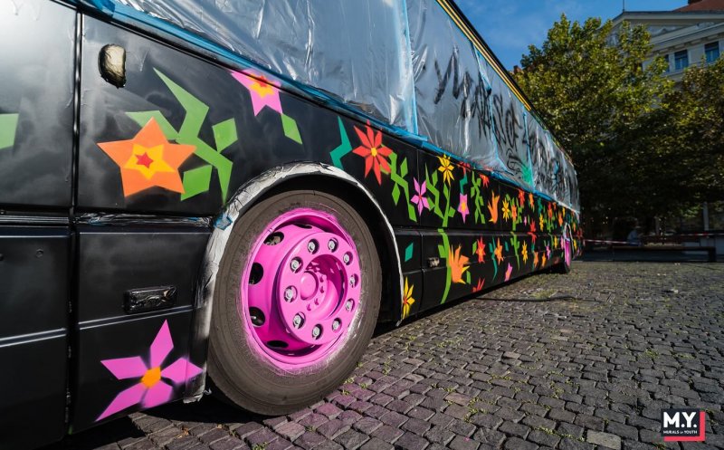 Două autobuze ale Companiei de Transport Public Cluj-Napoca au fost desenate cu graffiti de artiști consacrați, în cadrul unui concurs internațional de artă murală desfășurat în weekend la Cluj, Murals of Youth.