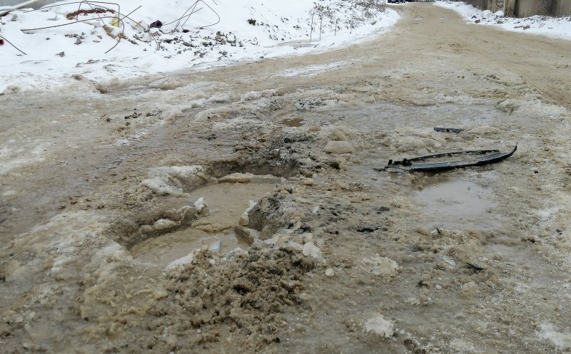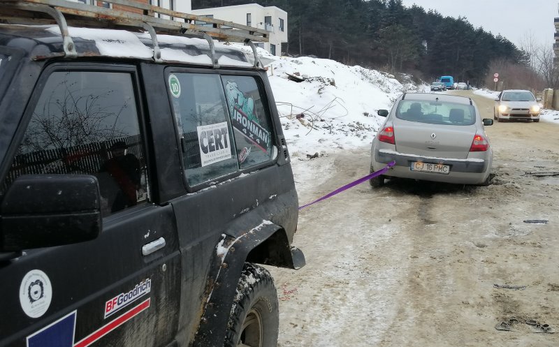 Zăpadă cu noroi, gheaţă şi gropi care înghit o roată de maşină. Vorbim despre drumul spre Floreşti, cel din apropierea mall-ului situat la ieşirea din Cluj-Napoca. Două maşini au rămas blocate şi a fost nevoie de intervenţia celor de la CERT Transilvania.