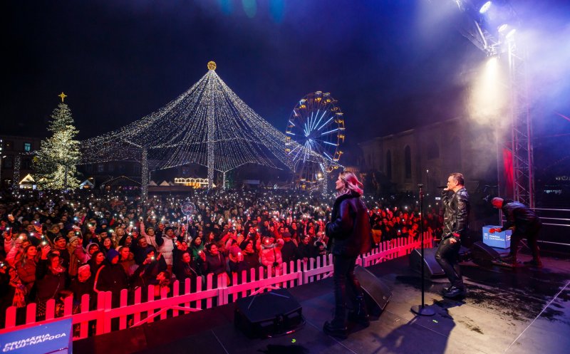 A doua seară a Târgului de Crăciun din Cluj-Napoca a fost una magică. Sute de oameni s-au adunat în fața scenei din Piața Unirii pentru concertul formației Direcția 5. Cu mic, cu mare, cei prezenți s-au bucurat de concer și s-au alăturat și au fredonat versurile, au dansat și au completat coregrafia cu blițurile telefoanelor care au luminat centrul Clujului la ceas de seară.
