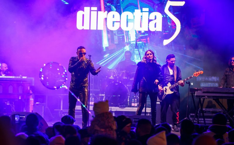 Video Foto Direcția 5 a făcut spectacol în cea de a doua seară a Târgului de Crăciun de la Cluj. Oamenii din Piața Unirii au fredonat versurile și au dansat împreună cu formația