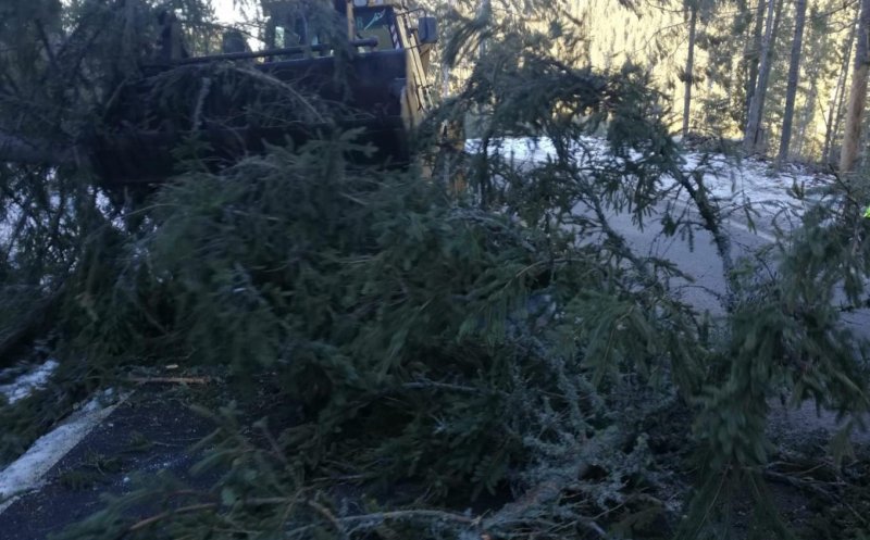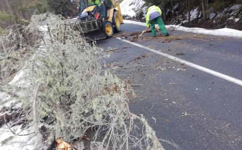 Vântul puternic a doborât mai mulți copaci pe drum la kilometrul 34+037 metri, potrivit unui comunicat.