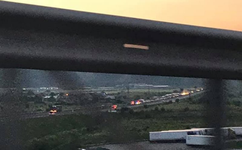 O autospecială cu modul de descarcerare al ISU a intervenit, duminică seara, în cazul unei autoutilitare care s-a răsturnat pe A3.