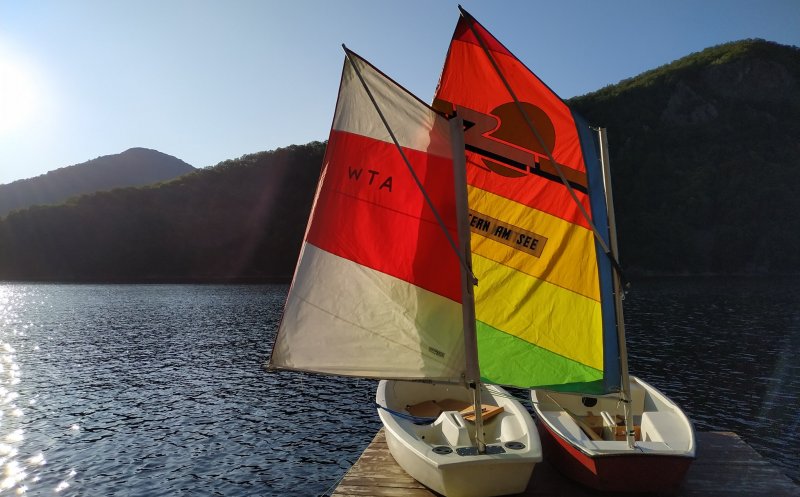 - Klepper Trainer – 100 lei / zi- poate fi navigat de una sau două persoane. Are o velă principală și un fock.