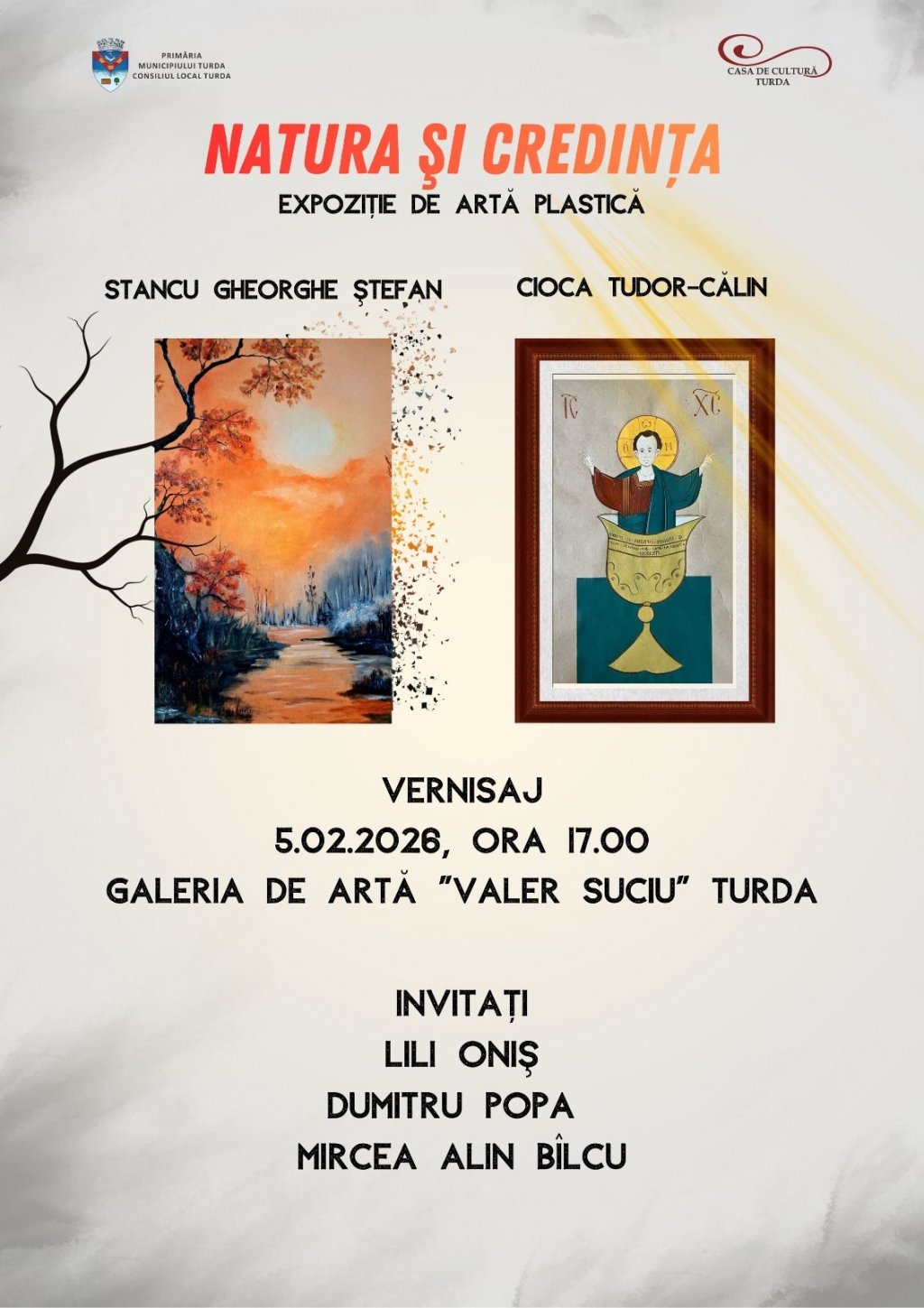La Turda va avea loc vernisajul expoziției de artă plastică “Natura și Credința”.