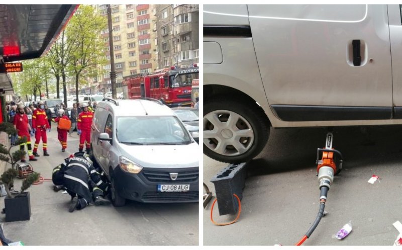 Pompierii clujeni au intervenit cu două autospeciale dotate cu modul de descarcerare pentru a scoate o femeie, în vârstă de aproximativ 70 de ani, care a fost surprinsă sub un autovehicul pe trotuar.