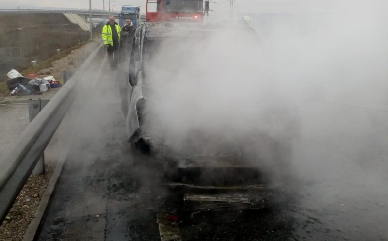 "Pompierii au găsit autovehiculul cuprins aproape în totalitate de flăcări și ocupanții ieșiți din acesta.
