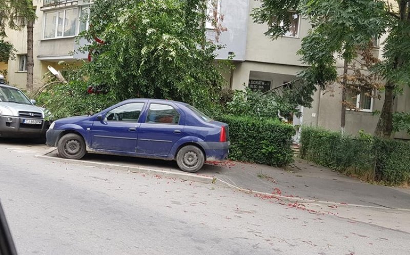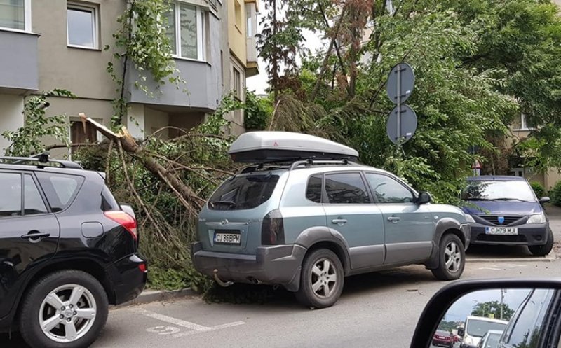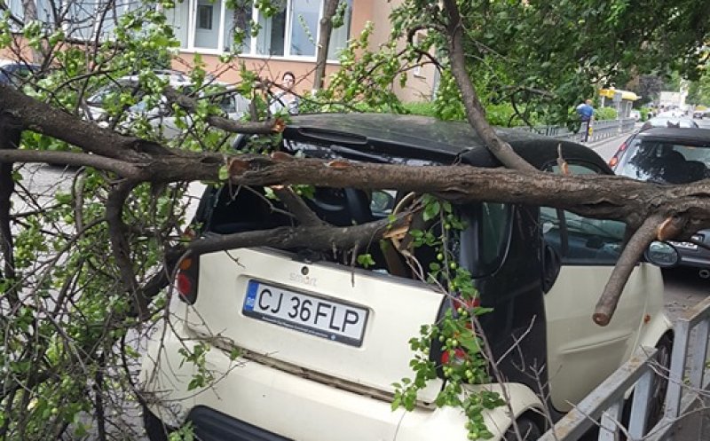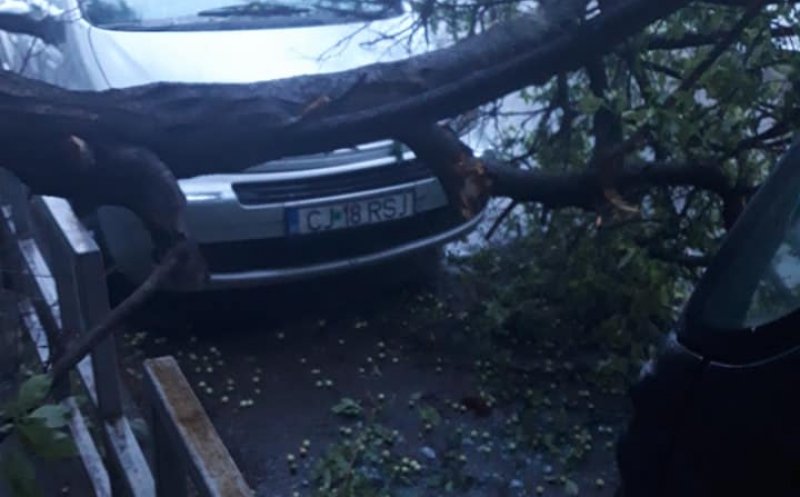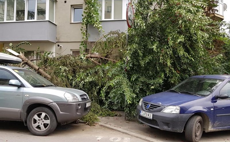 Maşini distruse, copaci căzuţi pe şosea, panouri smulse de vânt.