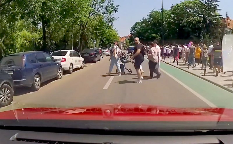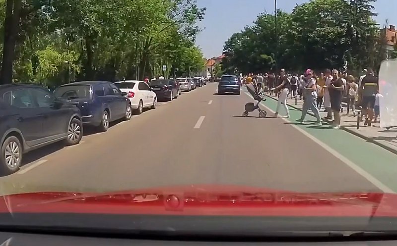 "Pe lângă Parcul Central", scrie cel care a postat filmarea pe Grupul de Facebook Info Trafic Cluj-Napoca. Pe filmare se observă cum o mămică are o tentativă de a traversa strada neregulamentar şi împinge căruciorul cu copilul în drum.