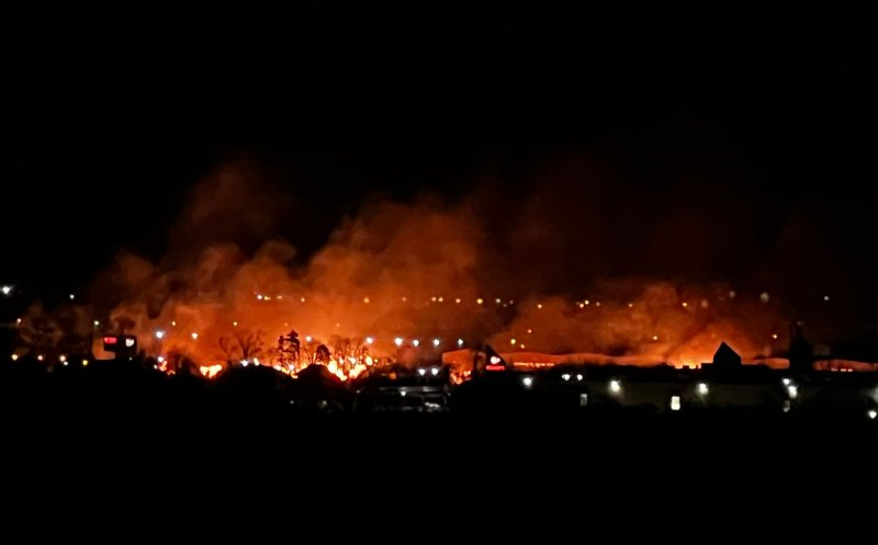UPDATE: Pompierii au lichidat incendiul care a cuprins o parte din stufărișul din zona Someșeni. De asemenea, a fost împiedicată propagarea flăcărilor la mai multe autocamioane parcate în parcul logistic Transilvania.