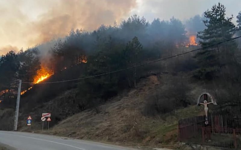 Foto Incendiu la Băișoara. Flăcările au cuprins vegetația de pe marginea șoselei