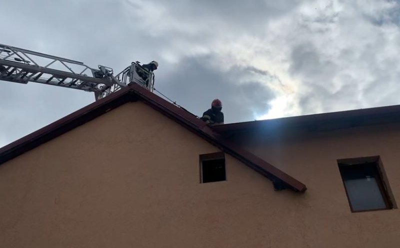 UPDATE: "Incendiul a afectat aproximativ 20 de mp din acoperișul casei, fiind lichidat. Cauza probabilă este coșul de fum izolat necorespunzător față de materialele combustibile. Echipajele au încheiat intervenția, iar în economia acesteia a contat foarte mult reacția promptă a proprietarului și a vecinilor, care au început stingă focul cu propriile linii de furtun până la sosirea pompierilor", au transmis reprezentanții ISU Cluj.