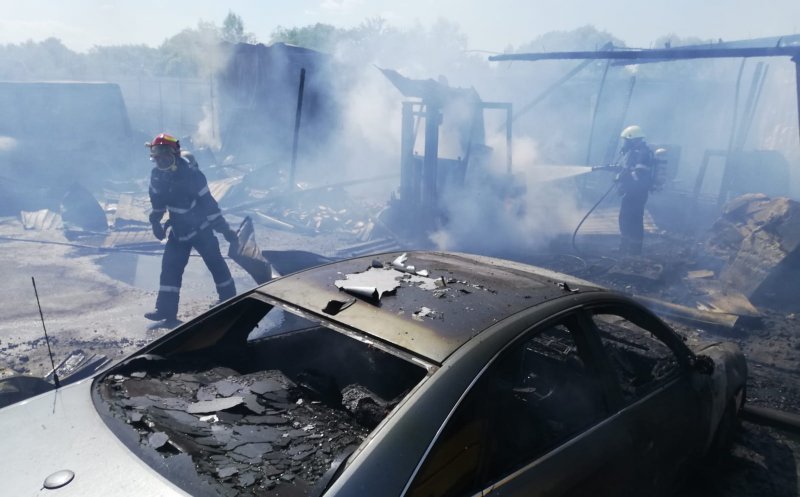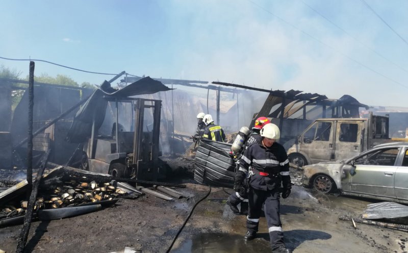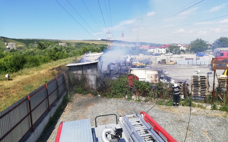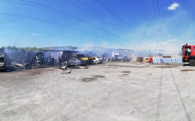Incendiu la un depozit de materiale de construcții din Cluj-Napoca. Flăcările au cuprins mai multe mașini parcate.