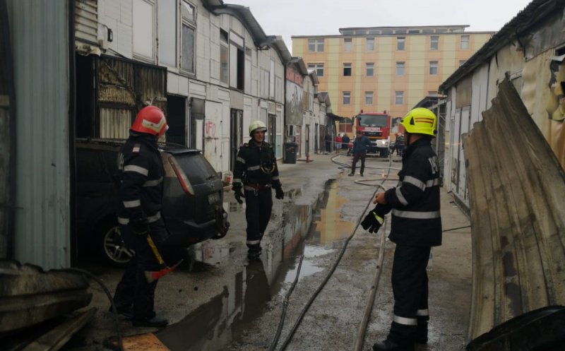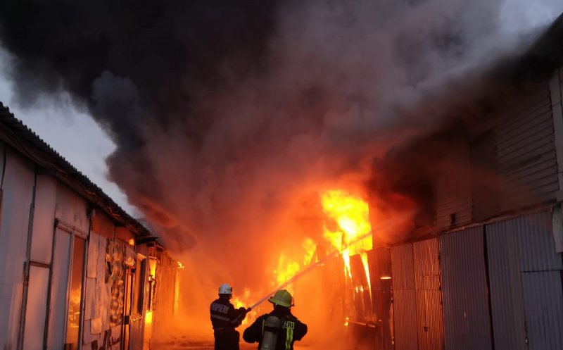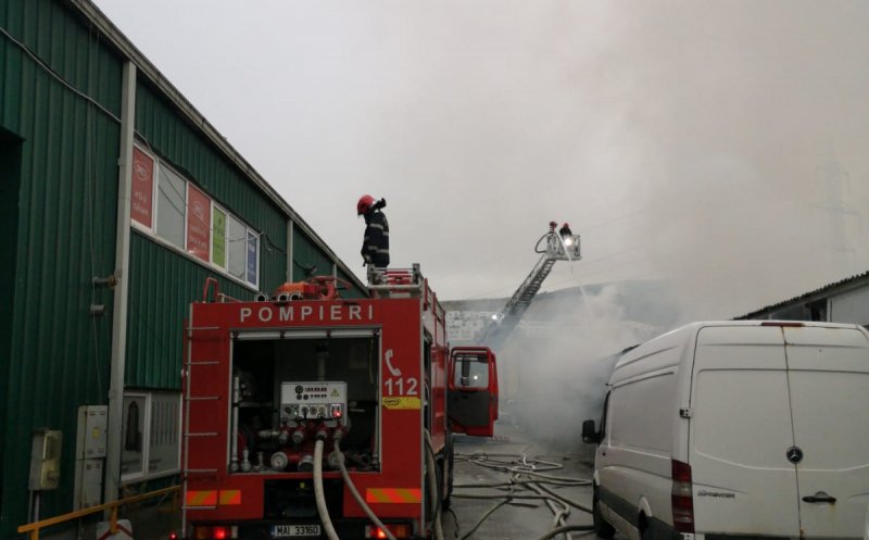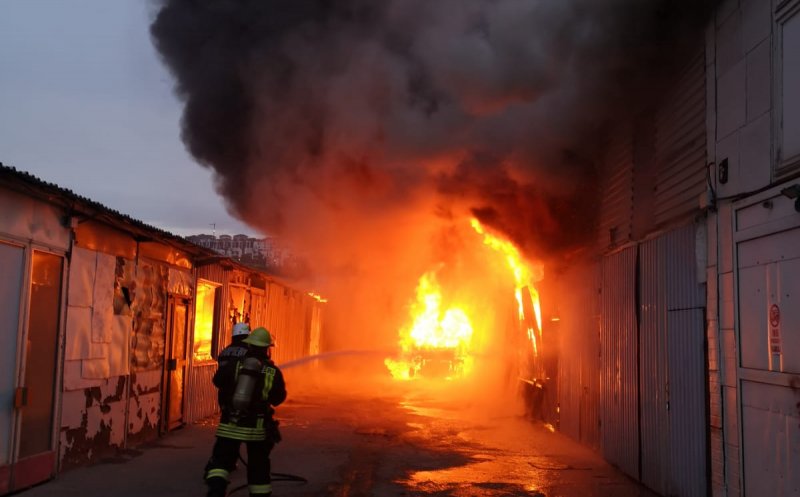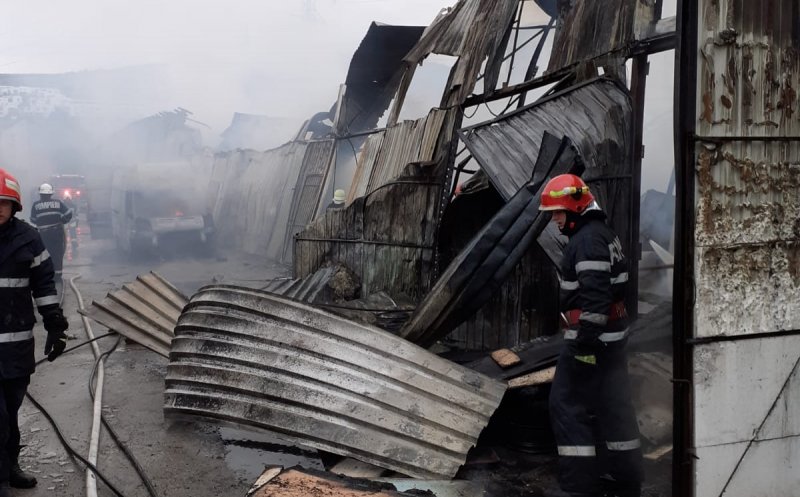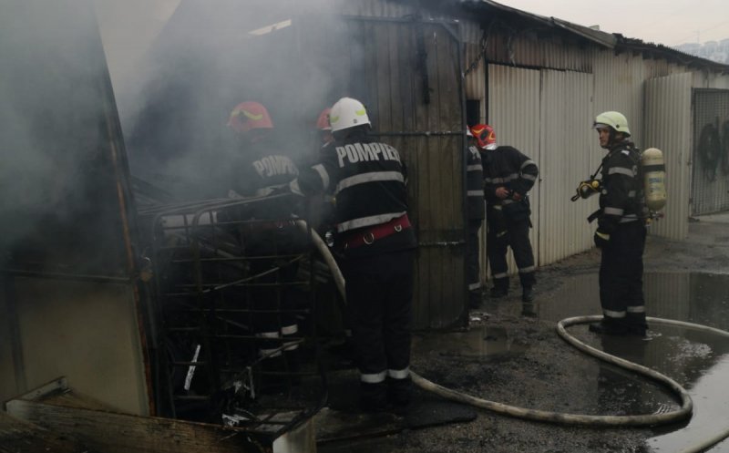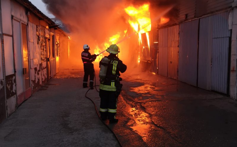 UPDATE: "Incendiul este sub control, se lucrează în aceste pentru lichidarea focarelor care ard mocnit". Obiectivul afectat este un ansamblu de mai multe depozite care funcționau ca atelier auto, garaje sau anexe în care erau păstrate lucruri personale.