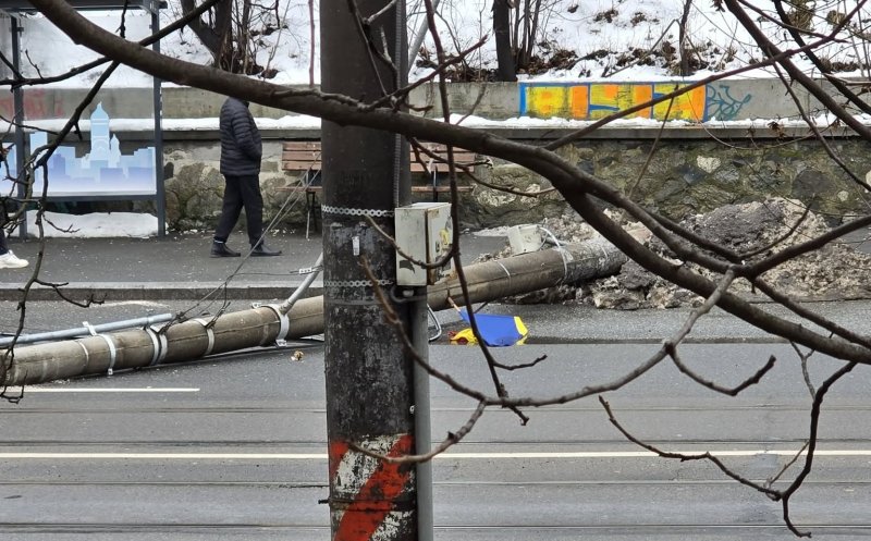 Update Incident pe o stradă din Cluj-Napoca: un stâlp s-a prăbușit pe carosabil