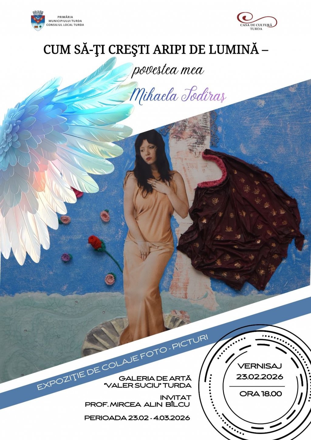 Galeria de Artă „Valer Suciu” din Turda găzduiește, în data de 23 februarie 2026, de la ora 18:00, vernisajul expoziției „Cum să-ți crești aripi de lumină – povestea mea”, semnată de artista Mihaela Toderaș.