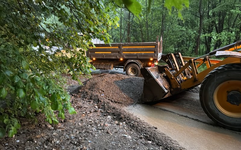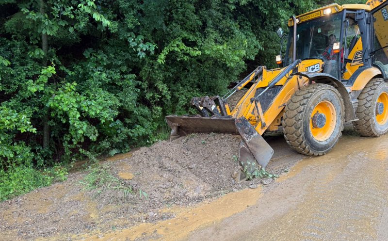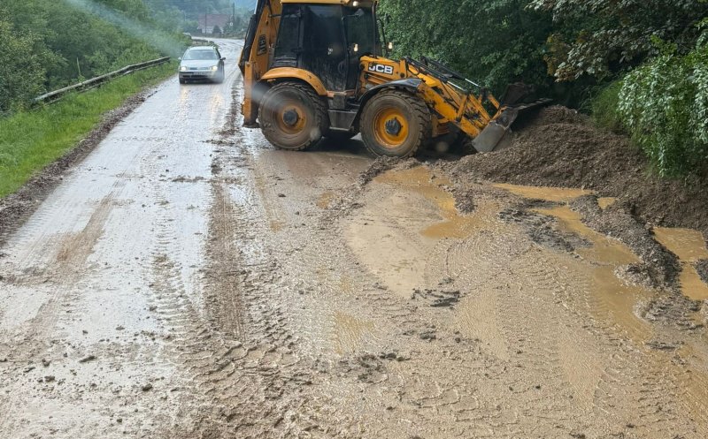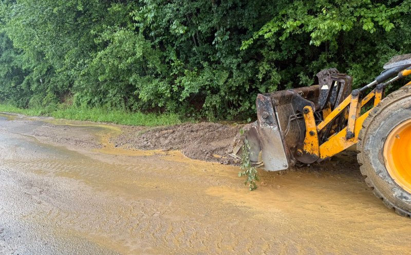 Foto Intervenții de urgență pe un drum din județul Cluj. Ploaia a făcut ravagii