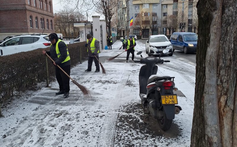 Foto Intervenții împotriva poleiului în Cluj-Napoca: trotuare și alei curățate pentru siguranța pietonilor