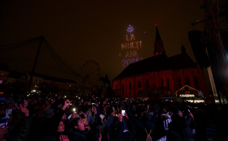 Foto La mulți ani, Cluj-Napoca. Peste 15.000 oameni au sărbătorit trecerea dintre ani în Piața Unirii, cu șampanie, concerte și spectacol de drone și lumini