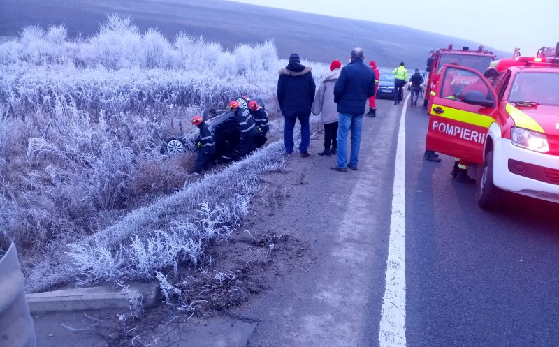"Un bărbat de 30 de ani din Timișoara a condus autoturismul dinspre Apahida spre Vâlcele, iar pe fondul neadaptării vitezei la condițiile de drum, respectiv curba la stânga și carosabil acoperit cu polei, a pierdut controlul autovehiculului, a părăsit partea carosabilă și a pătruns în șanțul de colectare a apelor pluviale, rezultând rănirea - posibil ușoară - a unei femei de 32 de ani, din Timișoara, pasagera stând pe locul din dreapta față, care a fost transportată la UPU. Șoferul a fost testat, rezultând că acesta nu a consumat alcool", se arată într-un comunicat al Inspectoratului de Poliție Județeană Cluj.